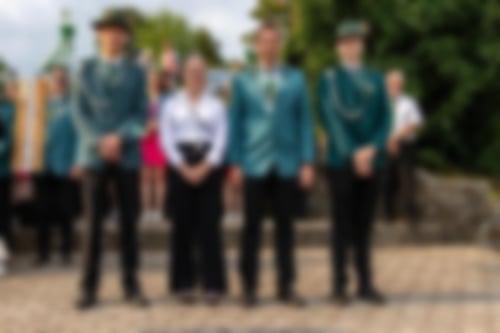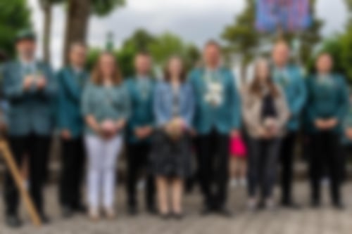 Schützenkönig Florian Laumann mit seiner Königin Tina Pösse und dem Hofstaat.